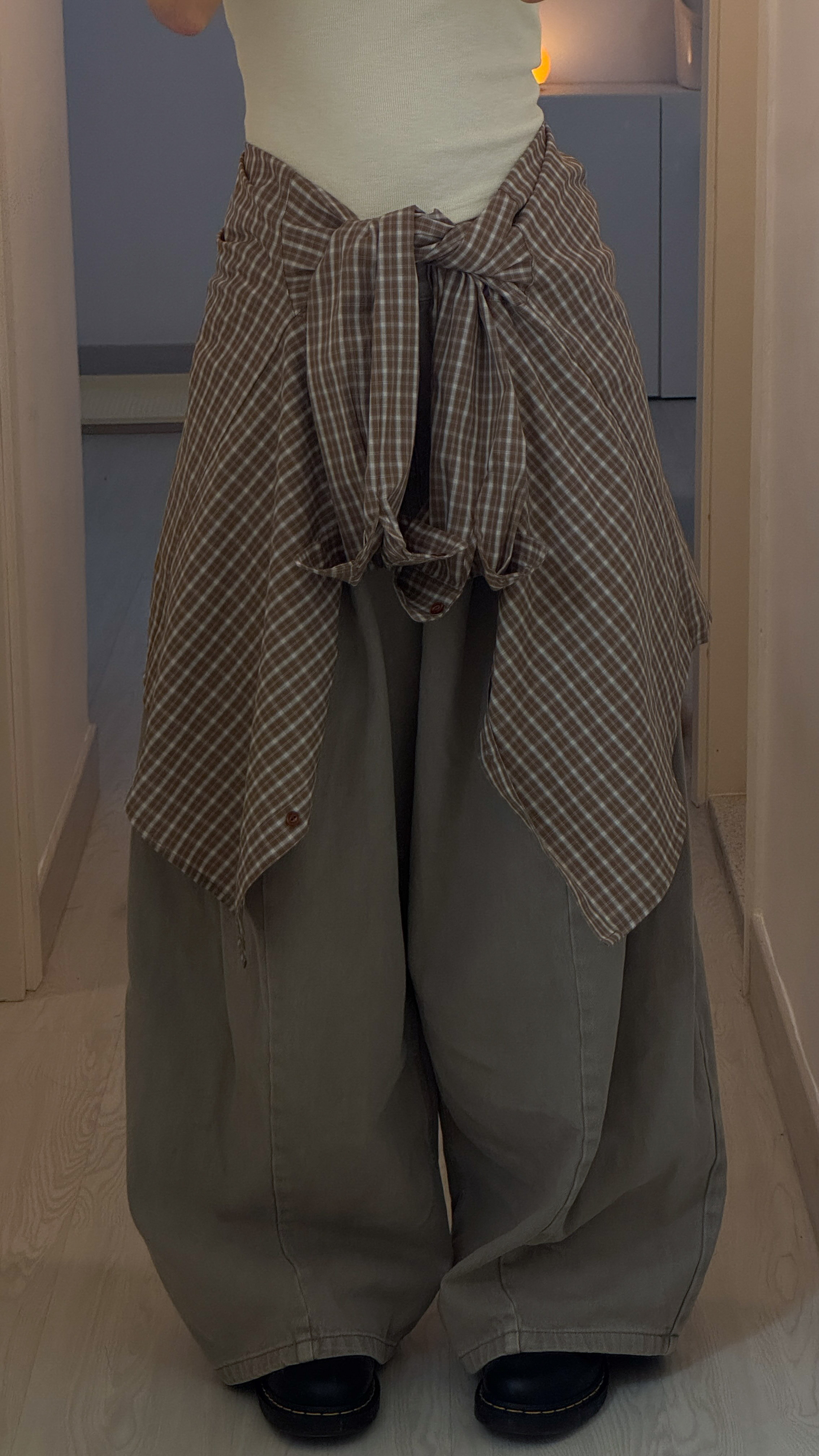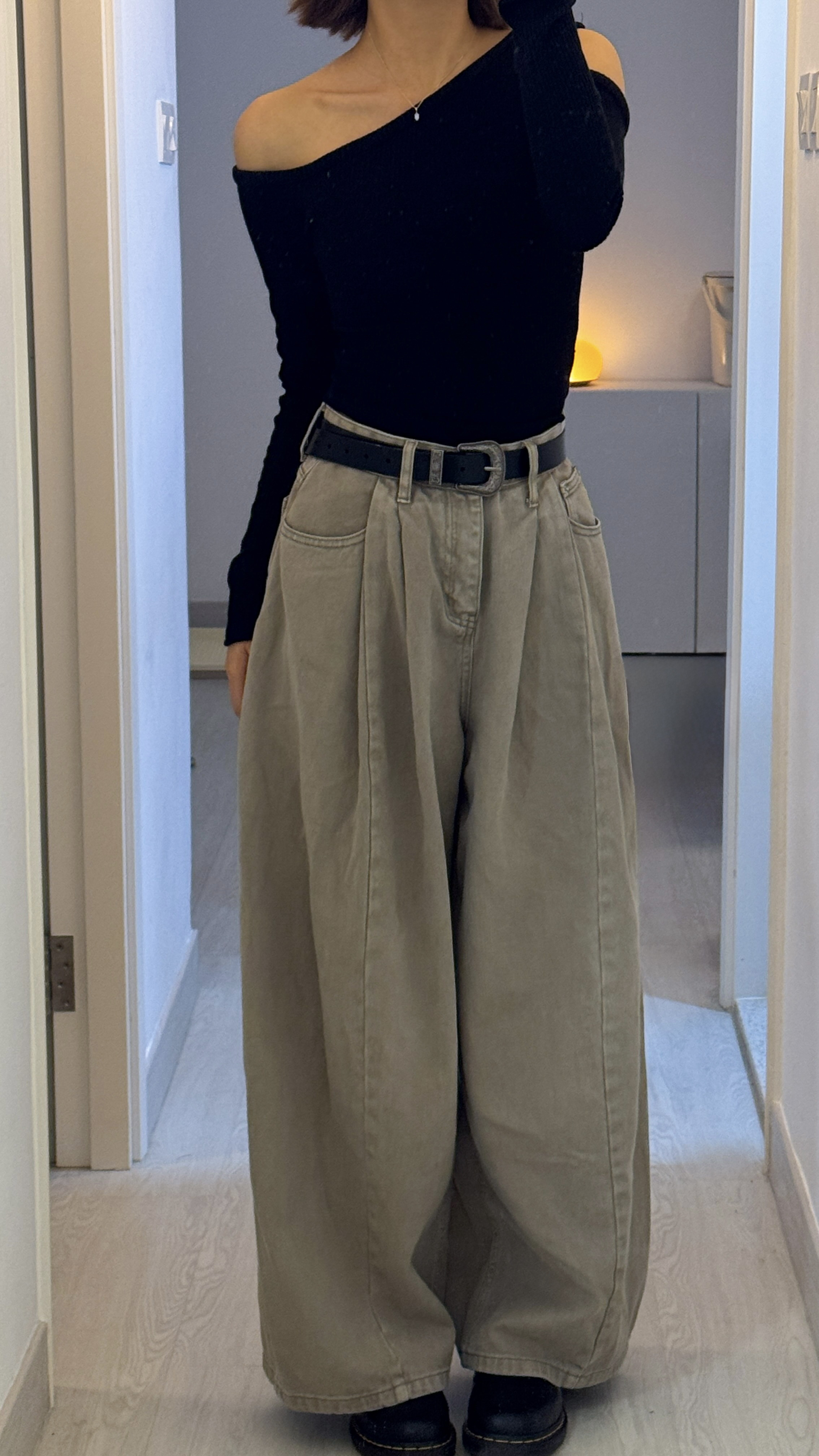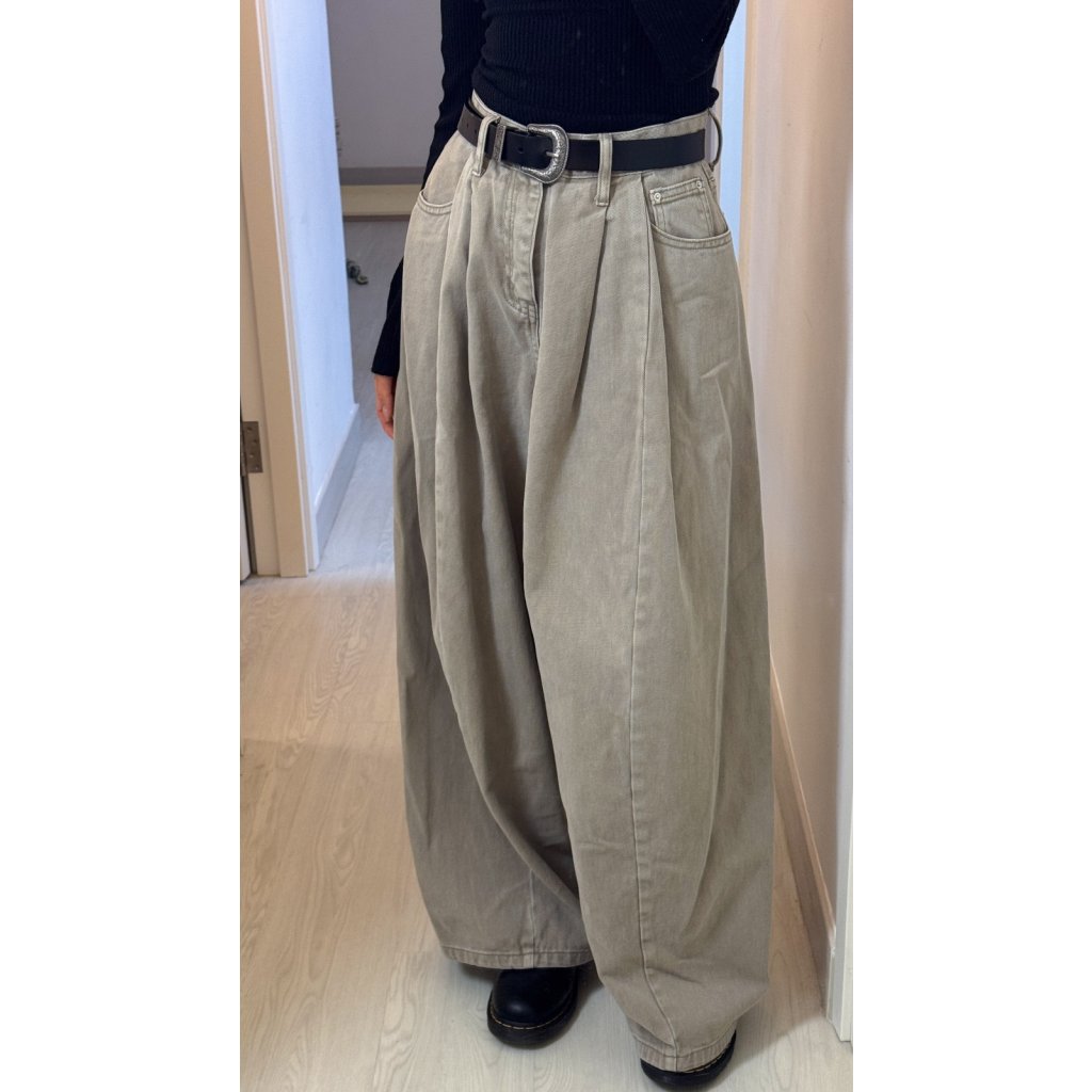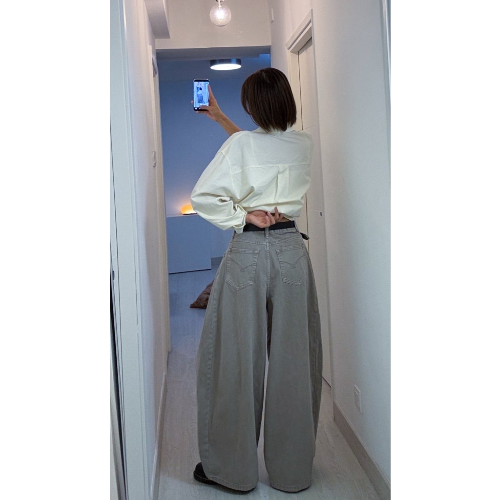 #005 🌬️低飽和清冷系列❕冷調淡卡其打摺闊腳牛仔褲