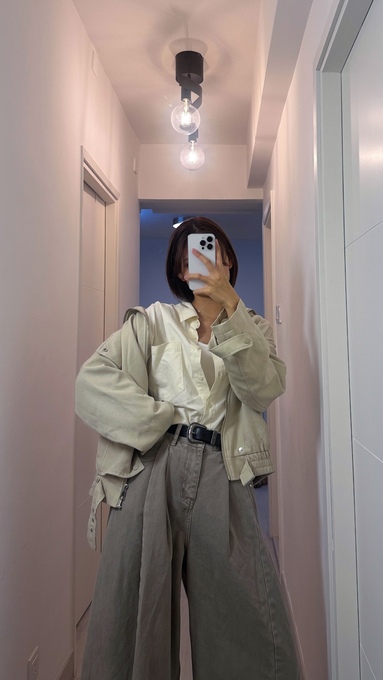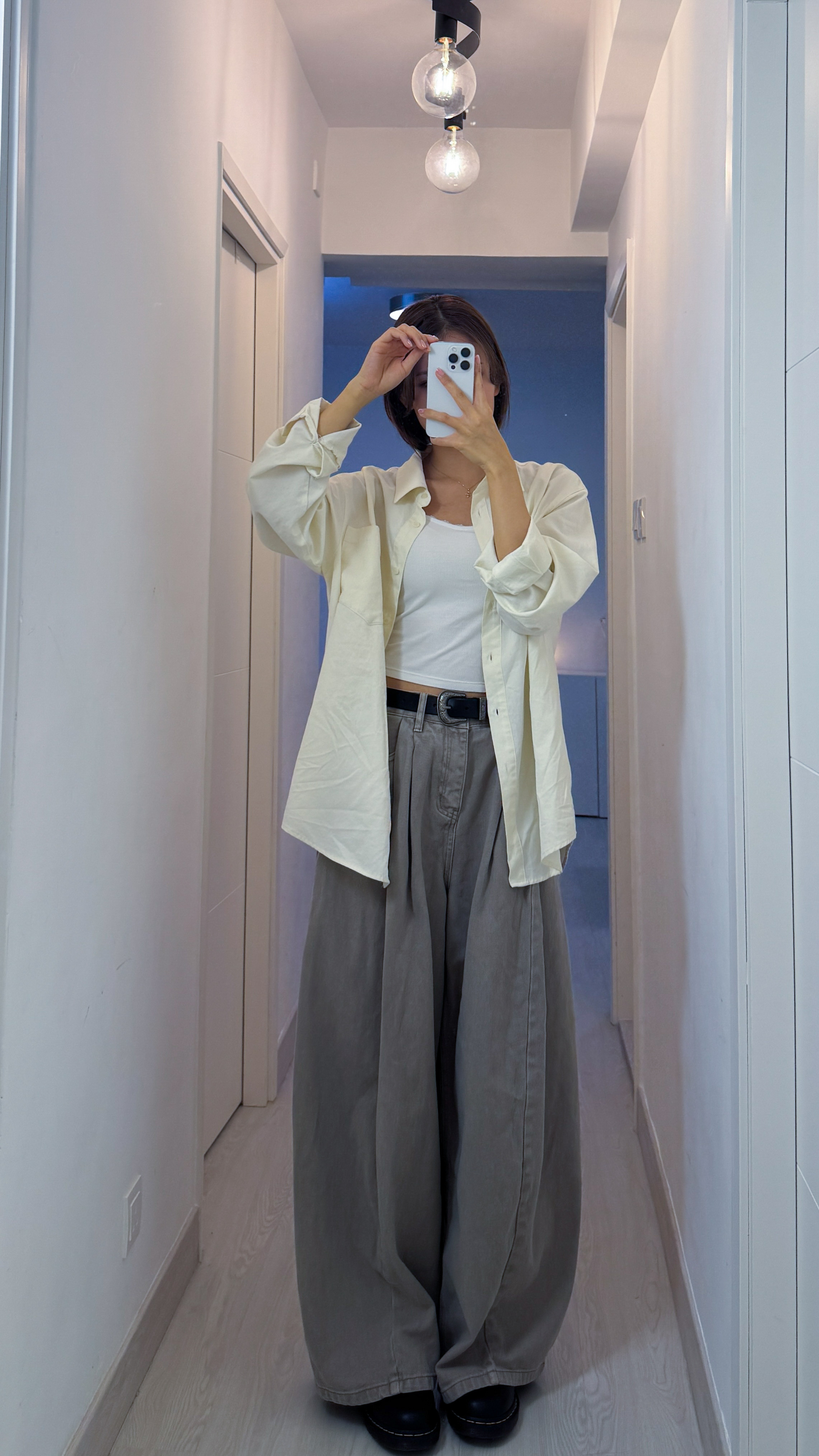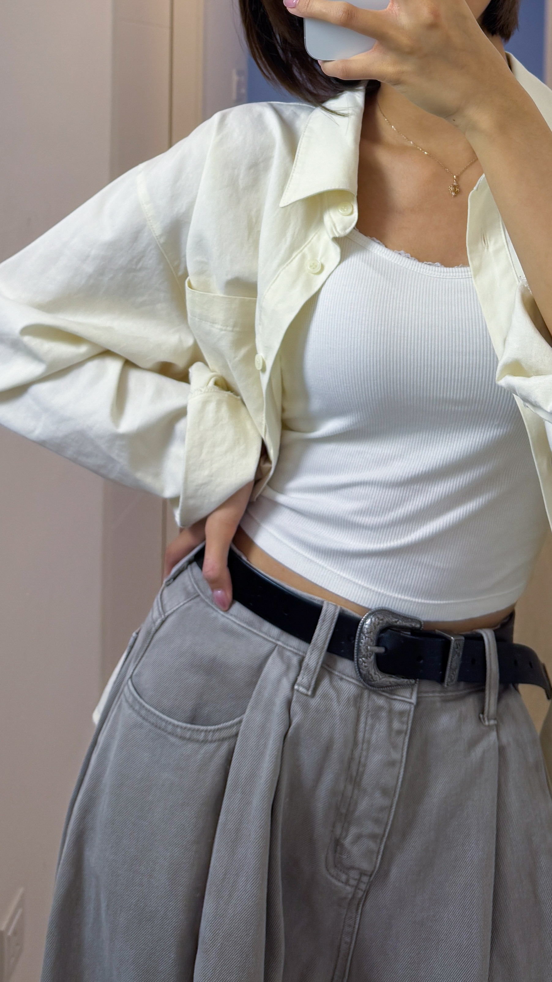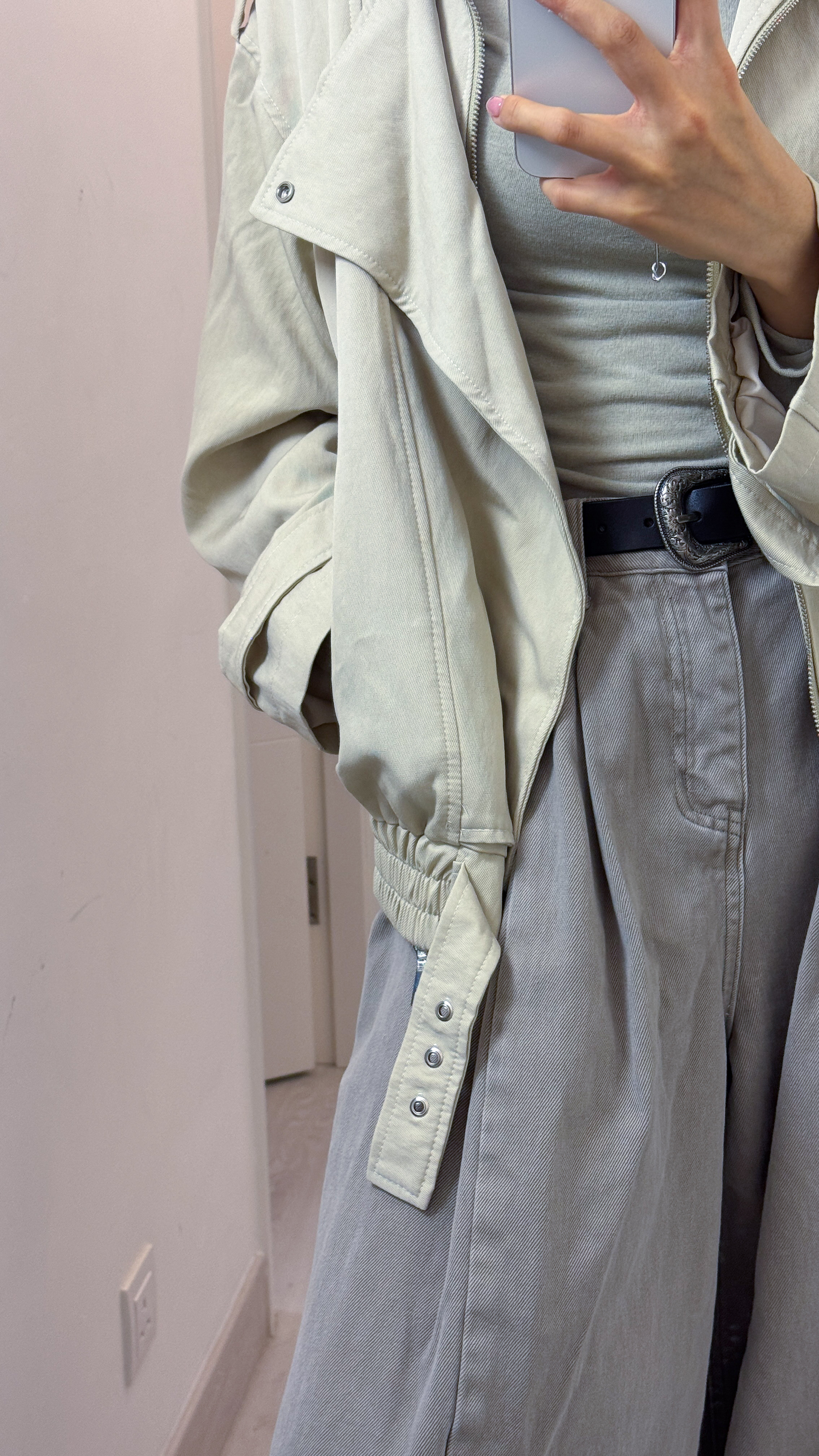 #005 🌬️低飽和清冷系列❕冷調淡卡其打摺闊腳牛仔褲