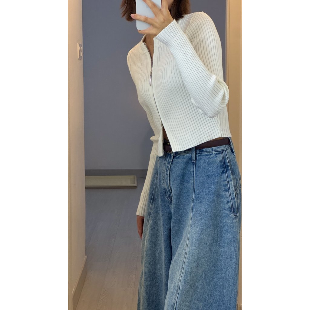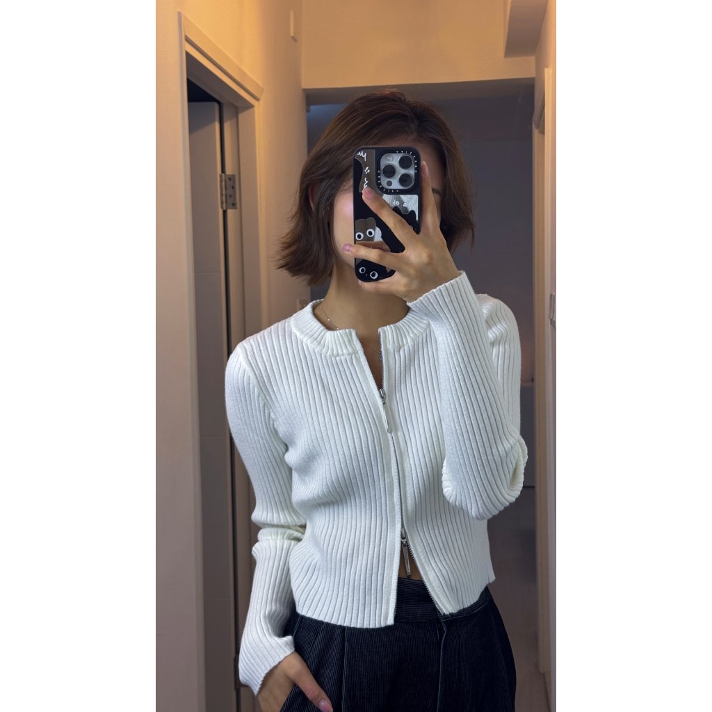 #101 ⚪️⚫️極簡直紋雙拉鍊冷衫[兩色入]