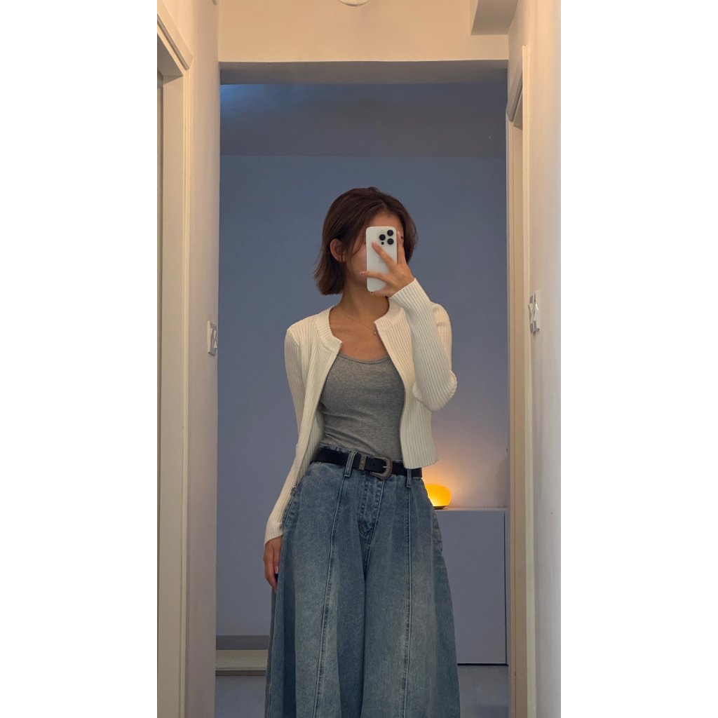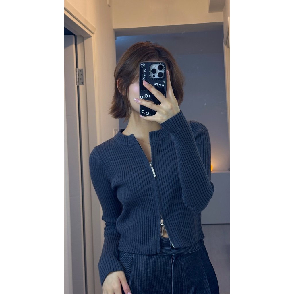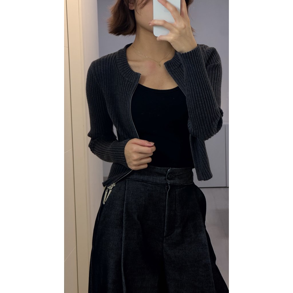 敞開穿著:拉鍊自然垂墜,成為前身裝飾線,適合疊穿內搭,隱約展現腰部線條