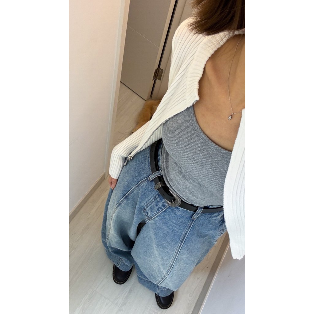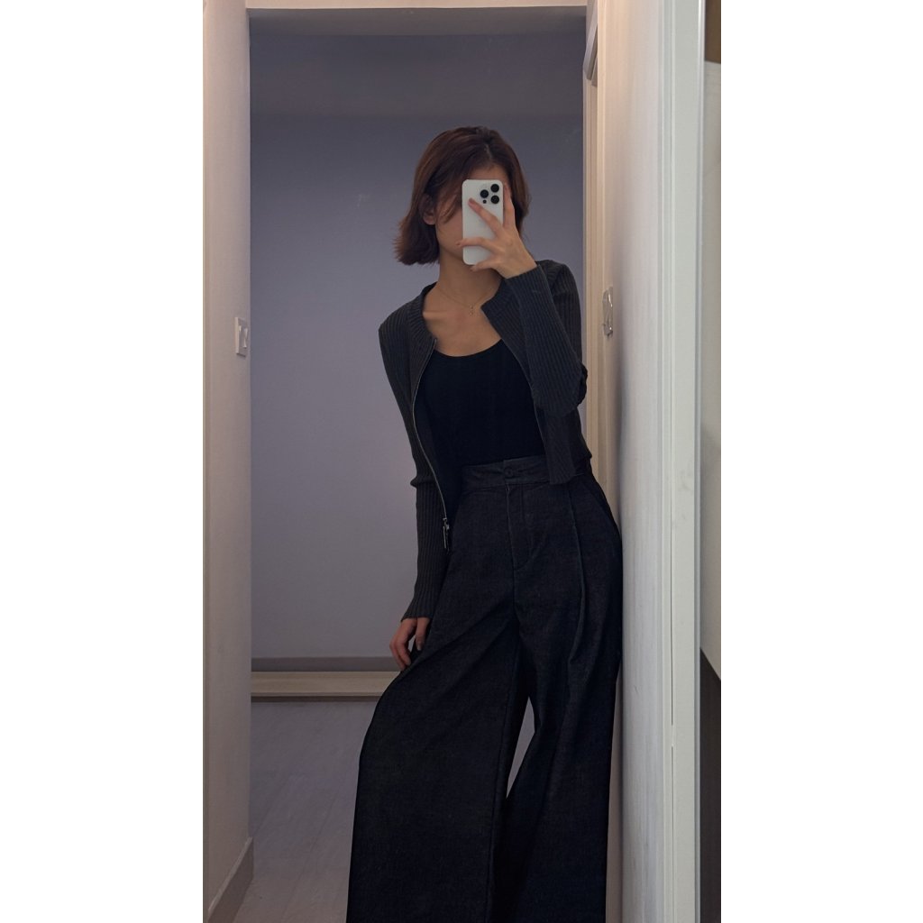 單穿:搭配高腰直筒西褲或寬鬆牛仔褲,將雙向拉鍊微微上下開啟,露出腰部肌膚或內搭項鍊,簡約中見細節。
