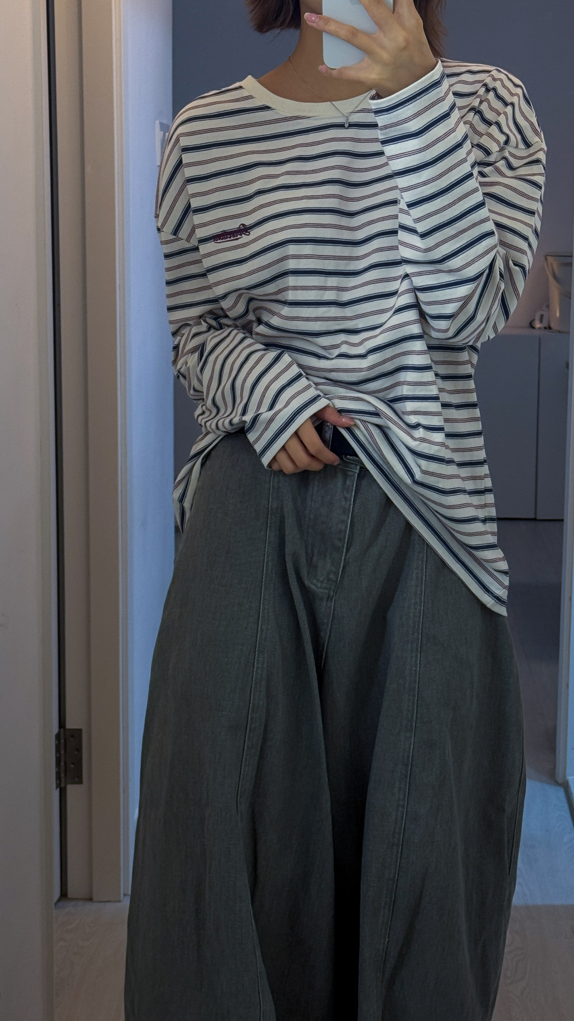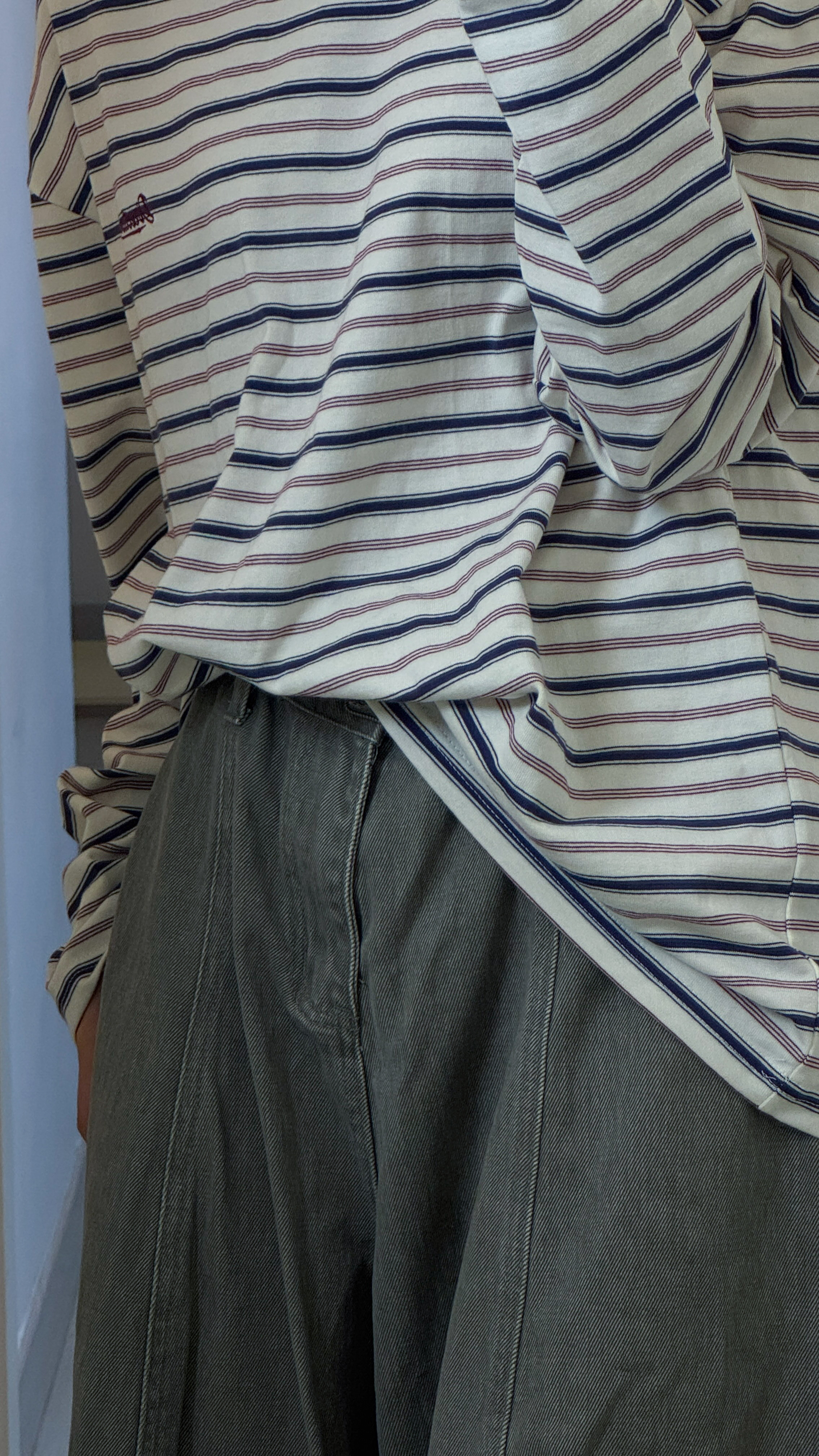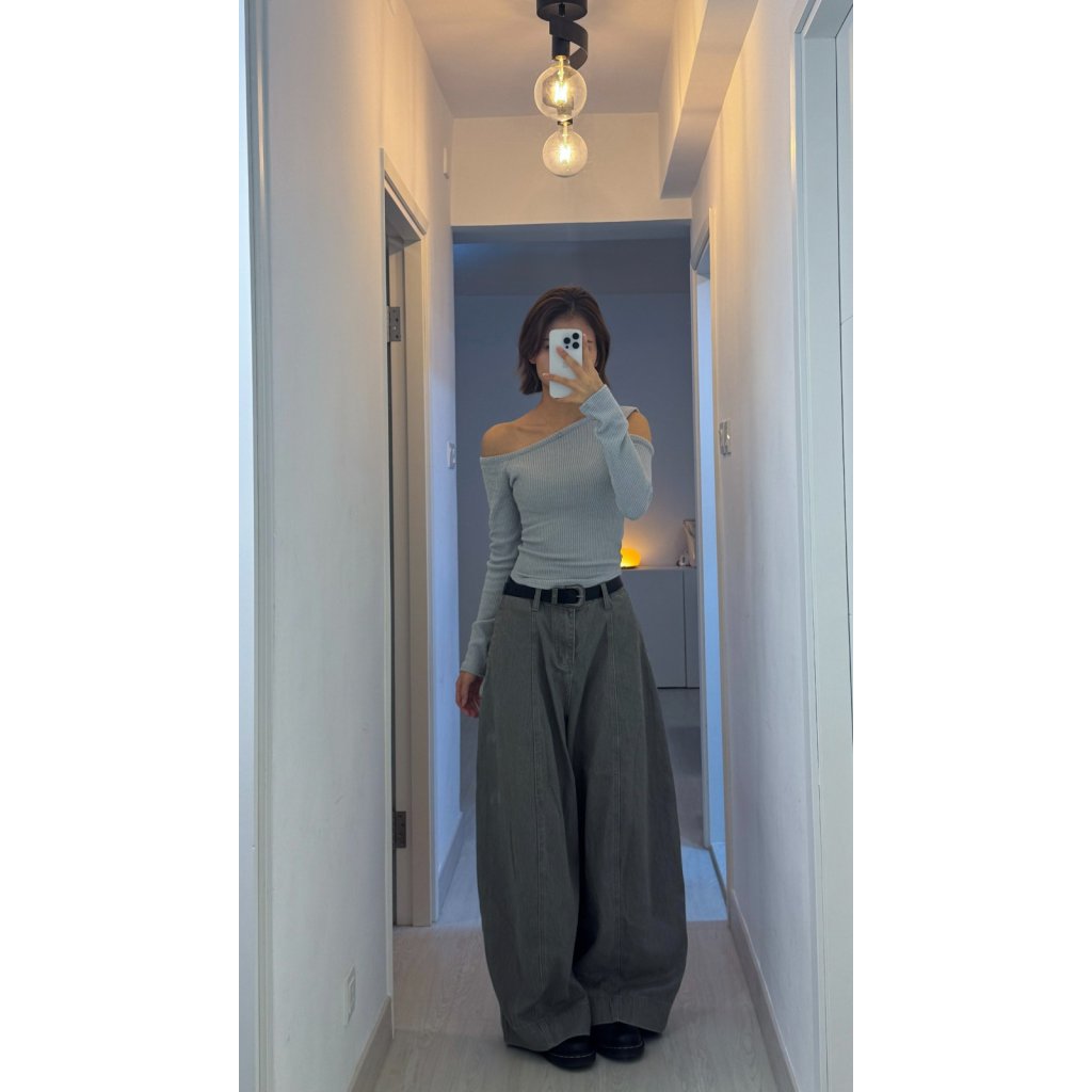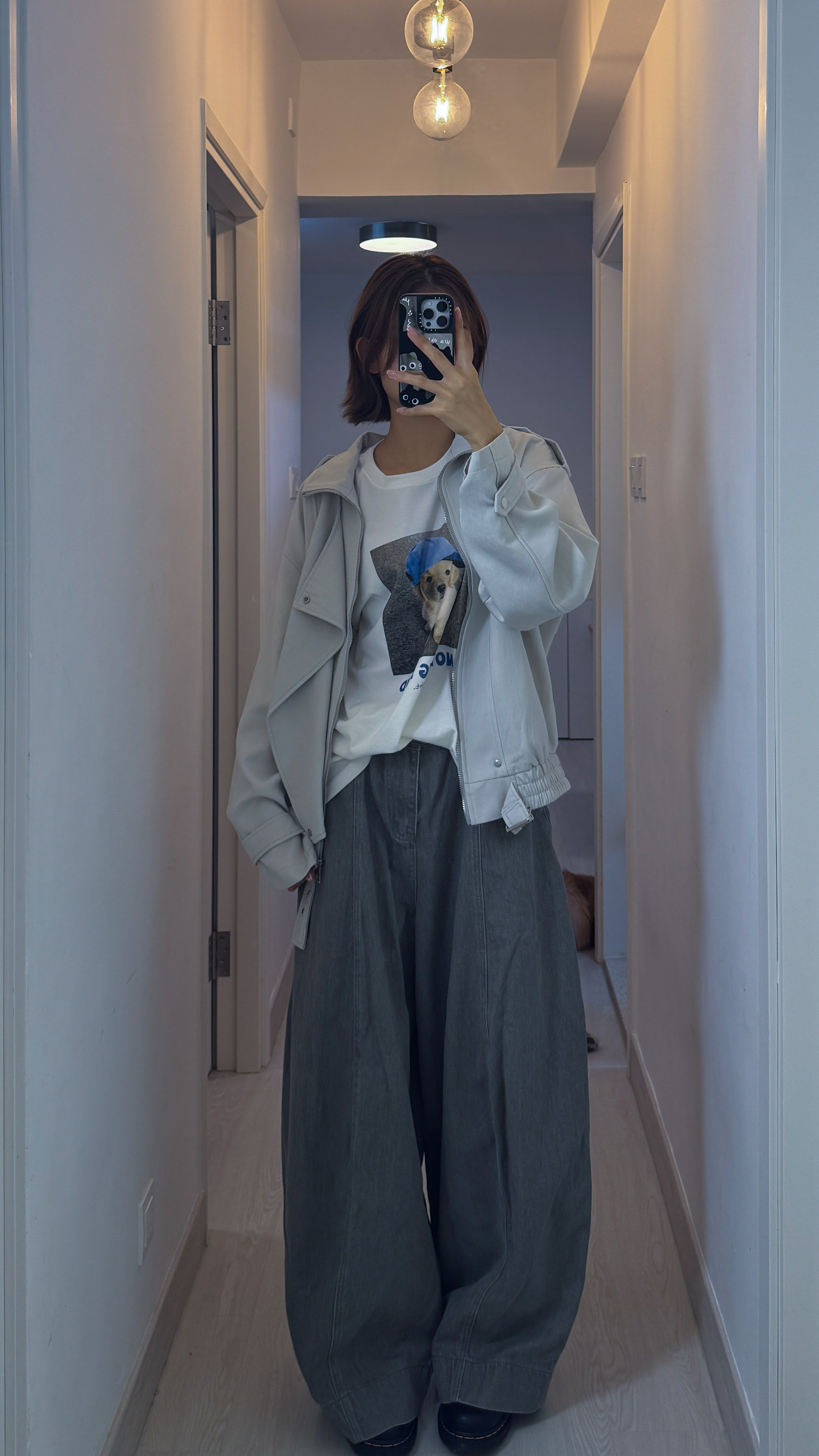 #003 🌬️低飽和清冷系列❕顯高中壓線闊腳牛仔褲🤍